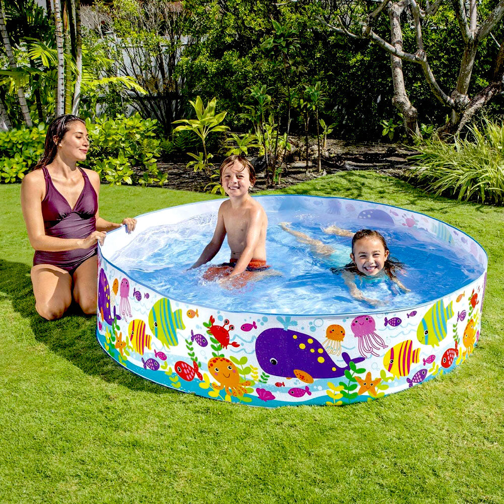 Bring home the Intex Inflatable Snapset pool gear up for some beach-side fun at home. Featuring vibrant colours and images, this pool makes for some great entertainment for kids. It is generously sized and has a depth of 6ft (1.8m), making it suitable for children aged 2 years and up. What makes this multicolour Snapset pool all the more appealing is that it can hold up to 443L of water at one go. Moreover, thanks to its 38-cm wall height, it is comfortable enough for kids to swim in it with ease. This pool is a great way to beat the summer heat.