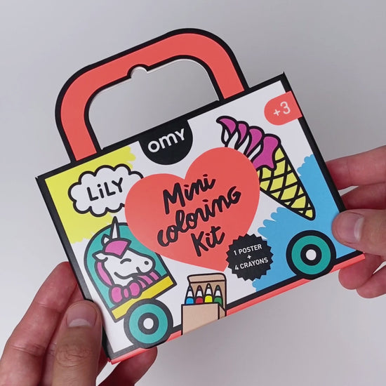 Practical and easy to take anywhere thanks to its small handle, this mini colouring kit follows kids on all their adventures — on trips, in transport, at restaurants, or packed in a suitcase.