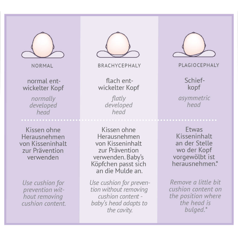A special baby cushion designed for the prevention and remedying of head deformations like brachycephaly and plagiocephaly.