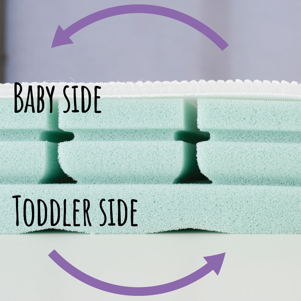 Reinforced edges on the long sides of the mattress help support baby's first attempts at standing in the bed. We deliberately not have reinforced edges at the head and foot ends as they will be too hard for baby's little head.