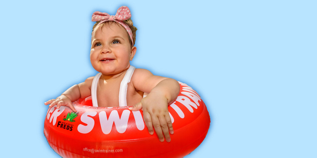 SWIMTRAINER "Classic" is the only swimming float that supports your baby in the correct horizontal swimming position.